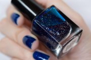 Тибетские ночи - это великолепное синее желе с серебристыми блестками разной формы. Идеальную насыщенность лак приобретает в три слоя, а блестки еще как будто подсвечивают его изнутри) Финиш никакущий, вообще ни разу не глянцевый, что весьма странно у лака с подобным эффектом и текстурой, поэтому топ обязателен.