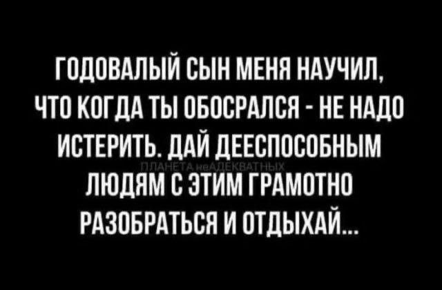 Здравствуйте уважаемые. Сына, как твоя курсовая? - Еще не закончил, но скоро начну. Никогда иностранцам не понять, как это можно начистить репу двум хренам... Или настучать по тыкве двум перцам И какие только крошки не побывали в моей постели... и из-под печенья, и из - под хлеба, и ...