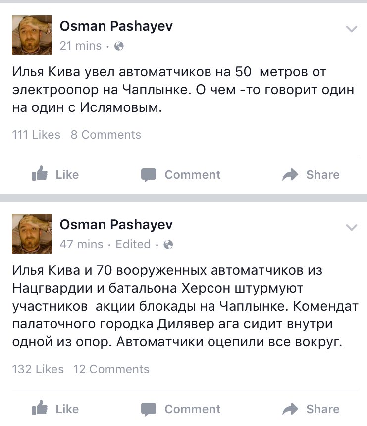 Немного субботней зрады. На Перекопе начались "запеклы бои" между персонажами "блокирующими Крым" подорвавшими опоры ЛЭП с боевиками нацигвардии, которые хотели обеспечить ремонт опор. Патриотов Украины мечтающих вернуть Крым бьют прикладами автоматов. "Российских агрессоров" в рай ...