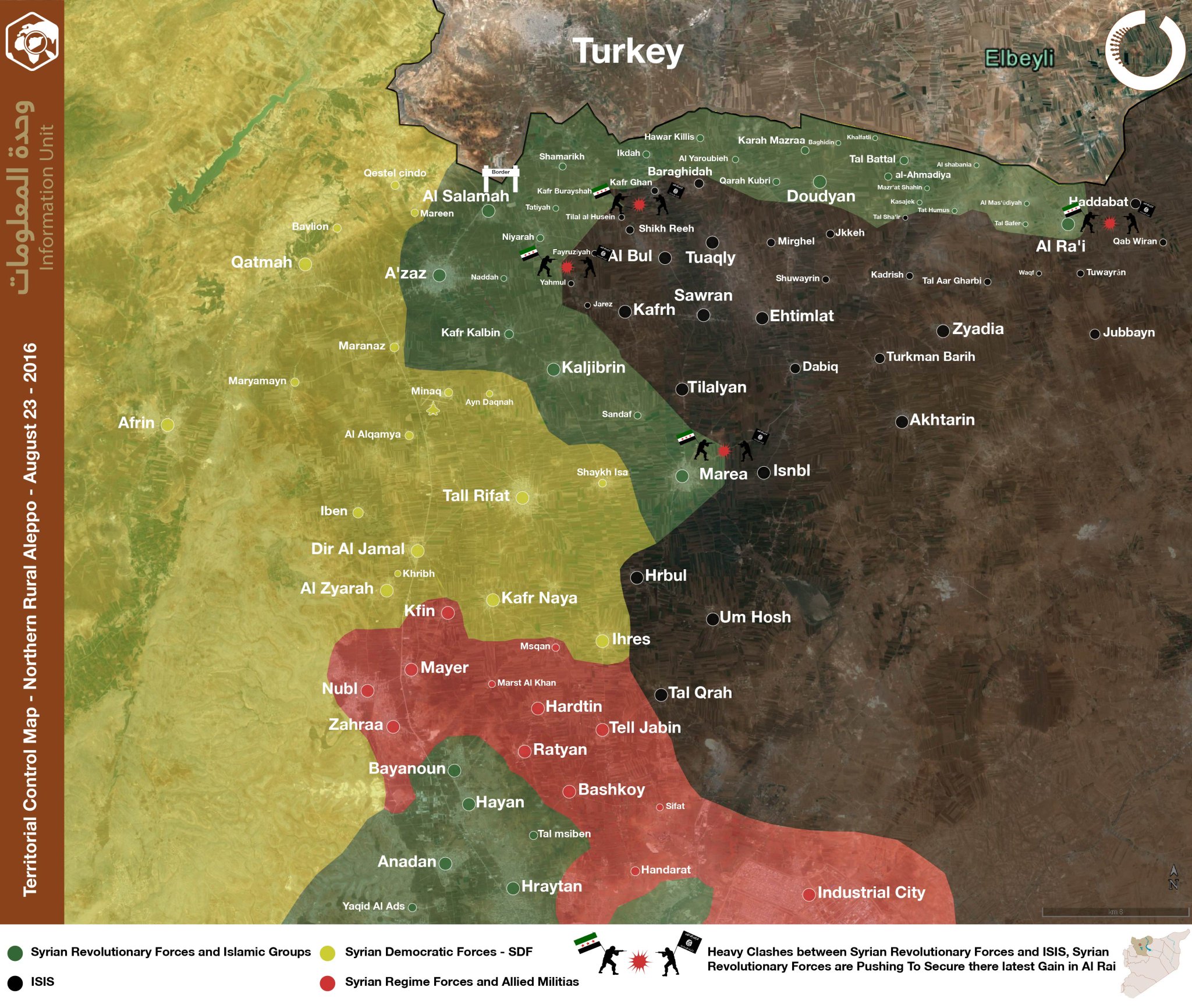 С утра Турция продолжила массированный артиллерийский обстрел позиций Халифата в районе Джараблуса, а так же курдских позиций к северу от Манбиджа. Халифат впрочем в долгу не остался и со стороны Джараблуса обстрелял из минометов турецкую территорию, в результате чего несколько мин ...