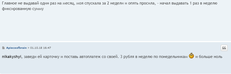 «Жена часто просит денег на косметику. Многие женщины думают, что хороший муж должен обеспечивать жену, что бы она всегда хорошо выглядела. Почему я должен покупать жене косметику, если она краситься только когда идет на работу, к подругам или на какие-то мероприятия?» «Камрады, ...