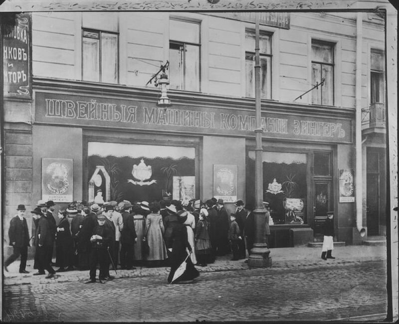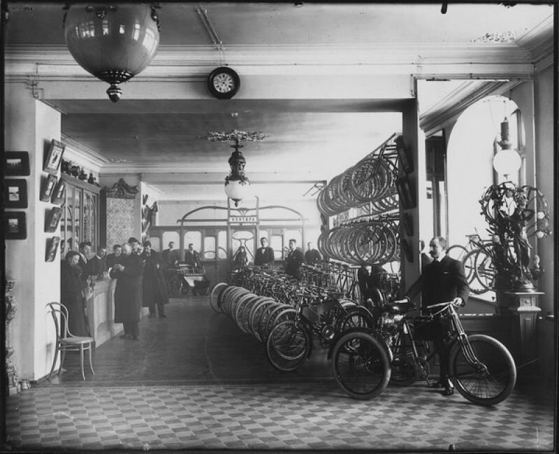 Елисеевский магазин в Санкт-Петербурге, начало 20 века Подсобные помещения Елисеевского магазина Лавка подарков купца Базилева, Москва, 1912 год Магазин тканей, начало 20 века Отдел велосипедов Торгового дома "Победа", 1913 год Покупатели рассматривают новые товары на ...