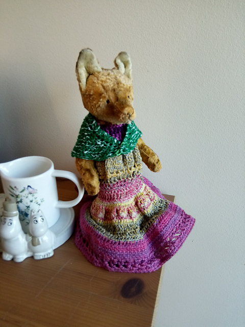 Вот пока и всё. В планах - связать-таки летний сарафан Алисе, и ещё - приодеть вот этого кавалера :)