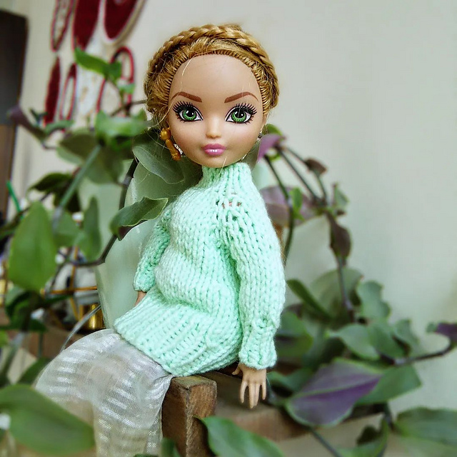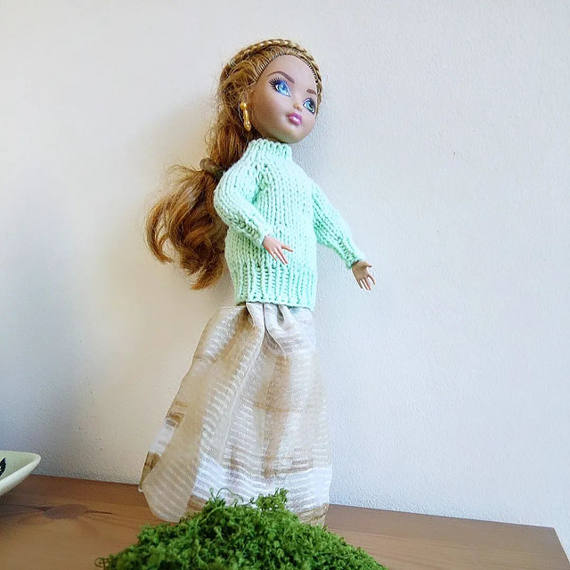 Мятный свитер для Эшлин (Ashlynn Ella). Базовый реглан. Нитки YarnArt Jeans, спицы 2,5мм. Резинка связана на чулочных спицах единичка. Сзади незаметный шов, чтоб голова пролезла
