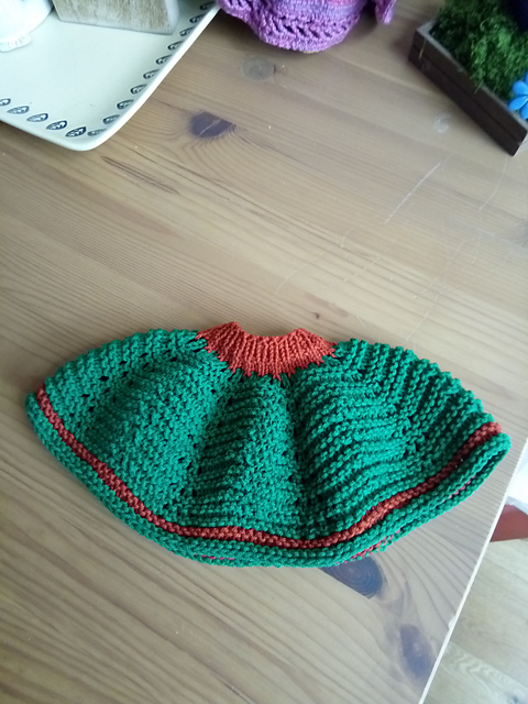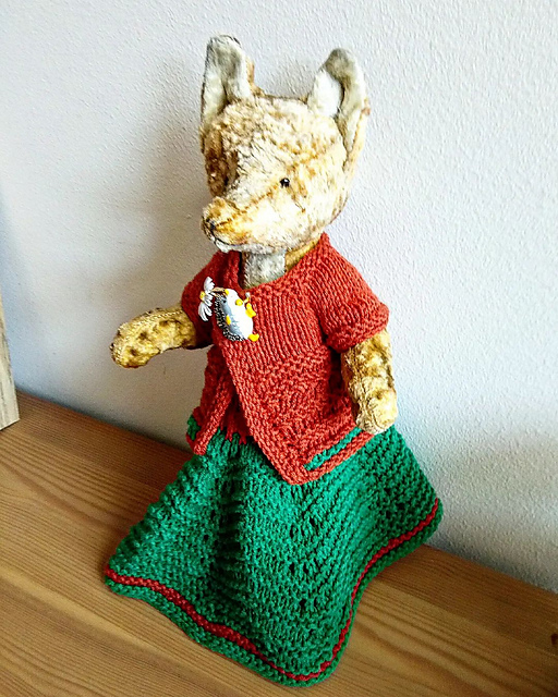 Она успела побывать игрушкой у 4 девочек. Но только я её одеваю :)))) Решила одеть по сезону, заодно опробовать сочетание цветов. Сначала получилась юбка, и лиса выглядела так