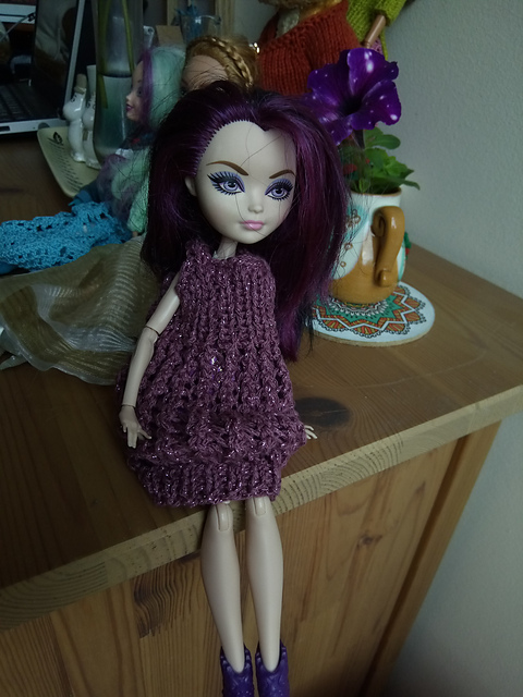 Платье для Рейвен Квин в стиле бохо. Фасон мой, узор - сетка с просторов интернета, вроде как от дизайнера Бруно Кучинелли. Нитки YarnArt elegance, спицы 3,25 мм. Сзади один шов.