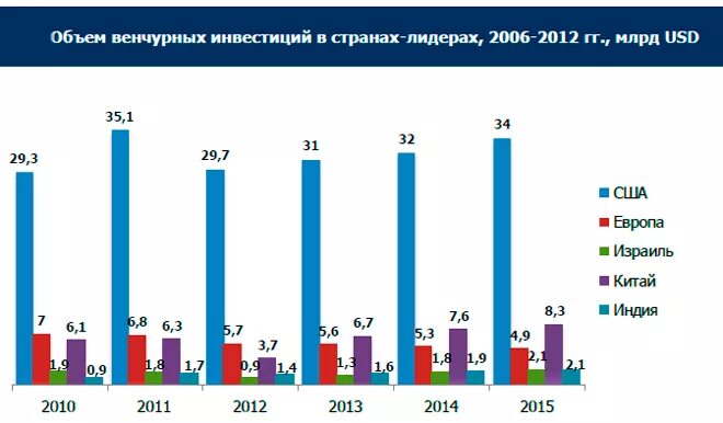 Вот объём венчурных инвестиций стран мира, где мы видим что инвестиции Китая в 4 раза меньше чем США, при этом ВВП на душу Китая ниже только в 3.3. А значит на душу населения венчурных инвестиций в процентах от ВВП в Китае меньше чем в США под мудрым руководством Компартии. А значит мудрая компартия и сама меньше чем в США вкладывает в ниокр относительно бизнеса и бизнес не может или не хочет стимулировать делать венчурные инвестиции.
