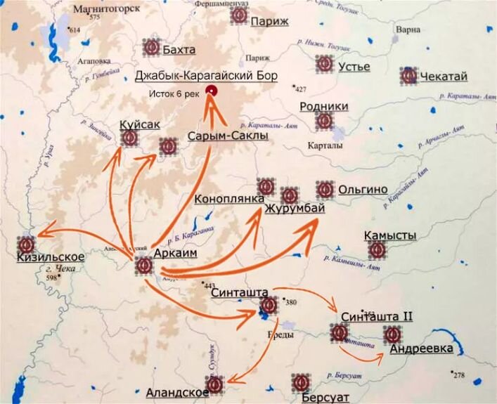 Самое главное свидетельство – это открытие на Южном Урале так называемой «Страны Городов», которое случилось еще в конце 50-х годов ХХ века. Эта страна, раскинувшаяся на площади диаметром 350-400 километров на территории Челябинской, Курганской и Оренбургской областей, насчитывает около 130 только обнаруженных городов и городищ, а сколько еще не найдено – покажет будущее.