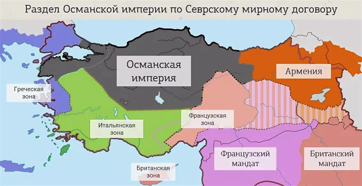 Франция. Город Севр, основанный в VI веке и знаменитый на весь мир своей фарфоровой мануфактурой мадам де Помпадур. На дворе 10 августа 1920 года, страны Антанты после победоносного завершения первой мировой войны подписывают мирное Соглашение с униженной, разгромленной и распавшейся Османской Империей. Только-только нарождавшаяся Турецкая Республика, тогда называемая Ангорское революционное Правительство под руководством Гази Мустафы Кемаль-паши (Кемаль Ататюрк) организуют похороны султанской Турции. По факту страна становится колонией Запада, финансы переходят под полный контроль Лондона и Парижа, армия сокращается до пятидесяти тысяч штыков без артиллерии. Стамбул отказывается от всех своих многовековых территориальных приобретений, передавая бывшие провинции-вилайеты под управление Британии, Франции, и частично – Италии.
