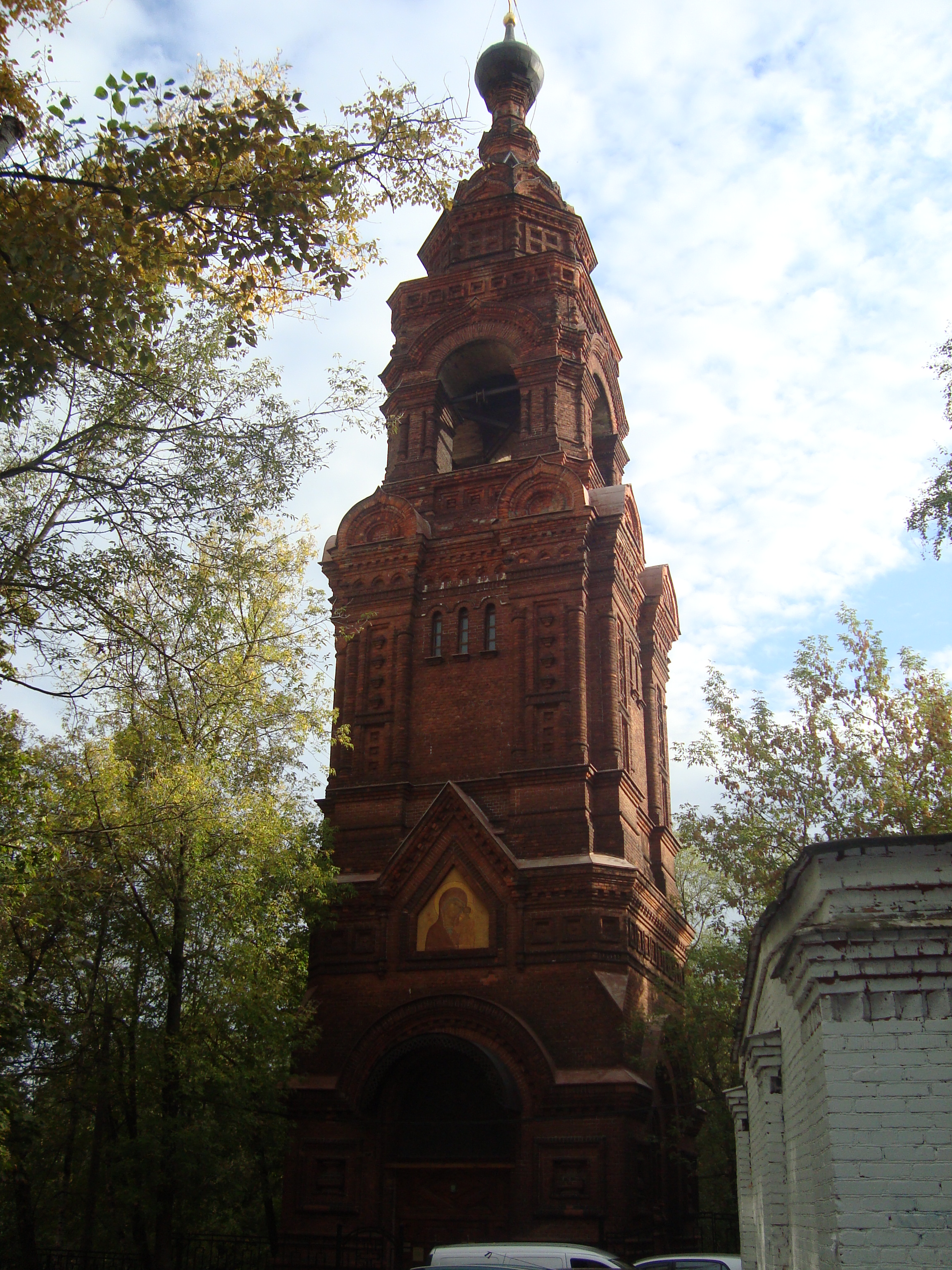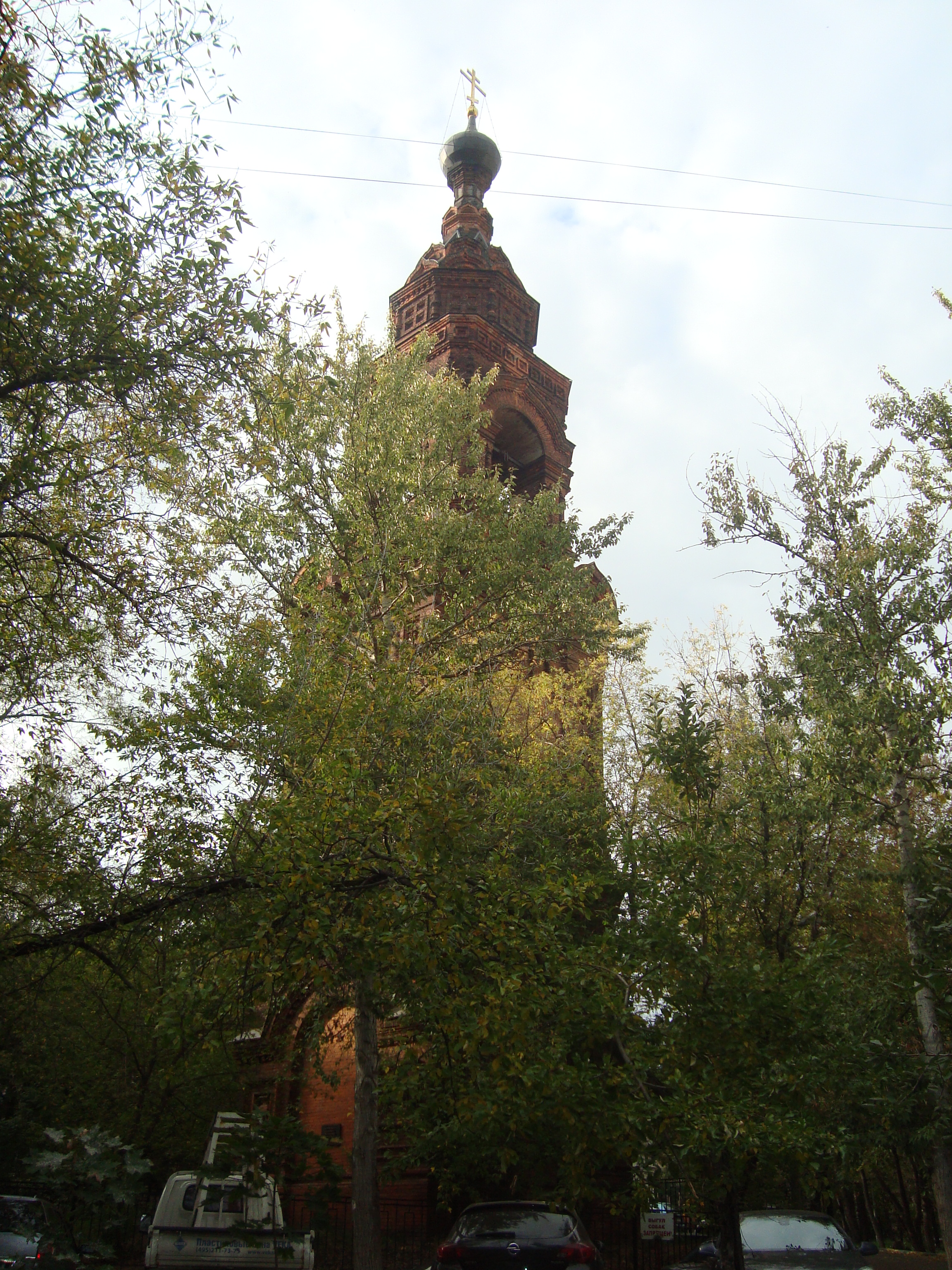 вернулись к метро Водный стадион.Причина такого повтора в том, что в первый раз я почему-то не заснял уникальный памятник истории и архитектуры - стоящий посреди пятиэтажек храм, бывшую колокольню женского Казанского Головинского монастыря.