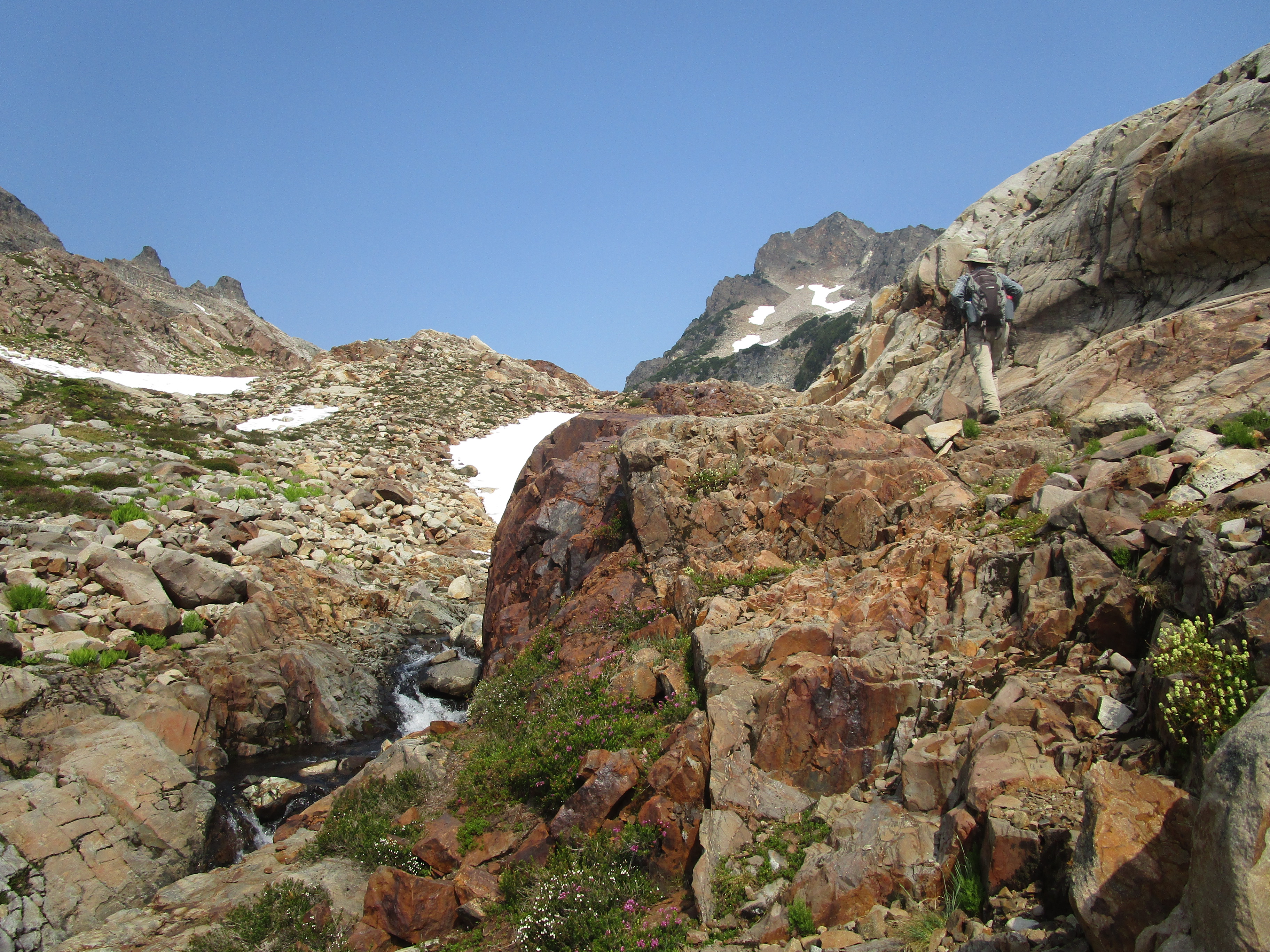 Если ранним утром на подъёме мы почти никого не встречали, то на спуске нам навстречу шли целые толпы: многие с большими рюкзаками и ясным намерением ночевать в Готической впадине. Там есть несколько официальных мест для палаток, но я боюсь, что всем желающим их может не хватить: