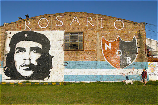 Прожолжаем тему аргентинкого граффити, или как его здесь называют - муралес. Сегодня все муралес будут из города Розарио, расположенного в провинции Санта-Фе. Название города произошло от слова Розарий — это традиционные католические чётки. И ещё Розарио очень известен тем, что в нём родился команданте Эрнесто Гевара (о нём подробнее попозже). Хотя может имена Кристиан Ансальди и Лионель Месси кому то скажут даже больше о Розарио чем имя Че. Соответственно всё это и наложило свой отпечаток на местное граффити.
