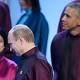 А бестактностью ли это было? Судите сами. В то время, когда председатель КНР общался с Обамой, Путин решил поухаживать за его супругой. Наш альфа-самец накинул покрывало на плечи Пэн Лиюань. Видимо, было холодно. Китайская цензура этот момент не пропустила в местные СМИ.