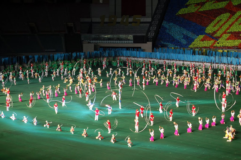 Какие бы ни были фото - передать отточенность и слаженность действий может только видео. Возможно, позже у меня будет и оно, а пока предлагаю посмотреть клип группы Faithless - I Want More. В нем использованы кадры из документального фильма "A State of Mind" британского режиссера Дэниэла Гордона (Daniel Gordon), о подготовке двух северокорейских девочек к "Арирану" 2003 года, когда праздновалось 55 лет со дня образования КНДР.