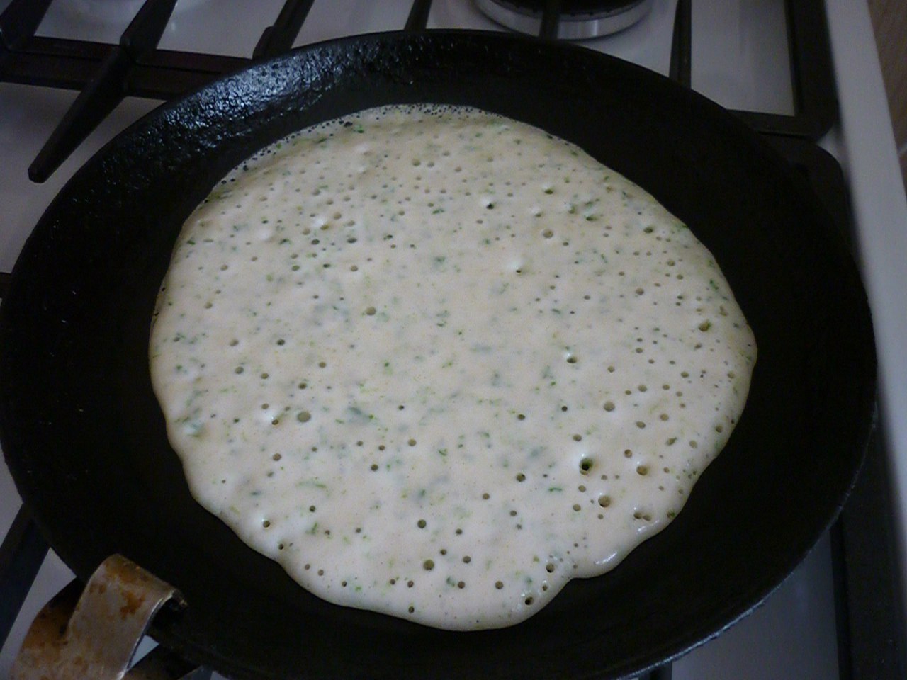 А еще можно отрезать ломтик сыра, и, когда перевернул первый раз, положить на половинку блина сыр, накрыть другой половинкой, и печь с двух сторон.