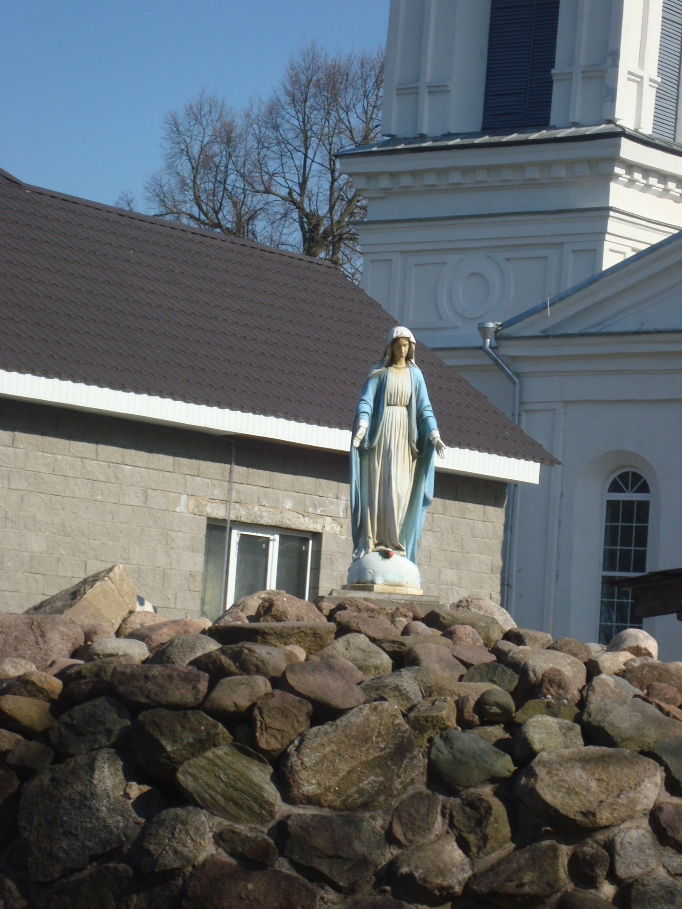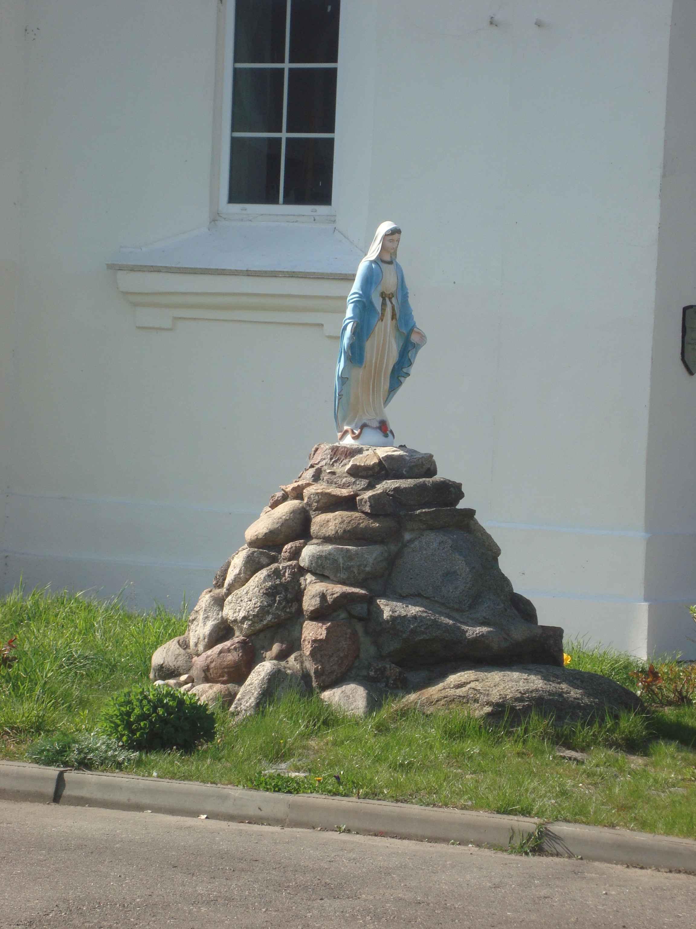 территориях.Вот и в Лепеле возле костёла святого Казимира установлена небольшая скульптура Девы Марии.