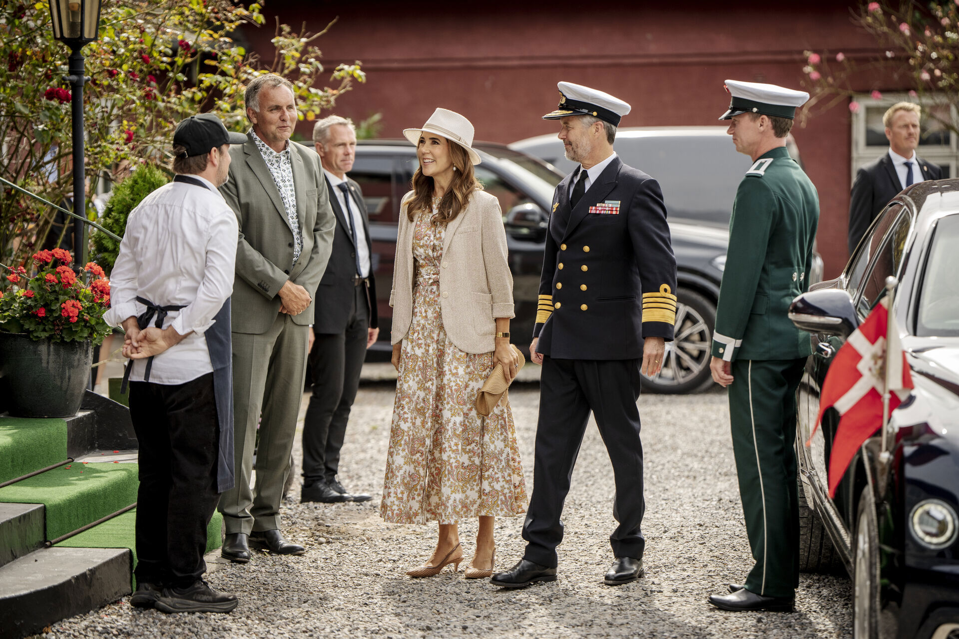 В отеле Brundby Rockhotel состоялся официальный обед. По прибытии Монаршую чету встретил владелец отеля Расмус Ханеволд.