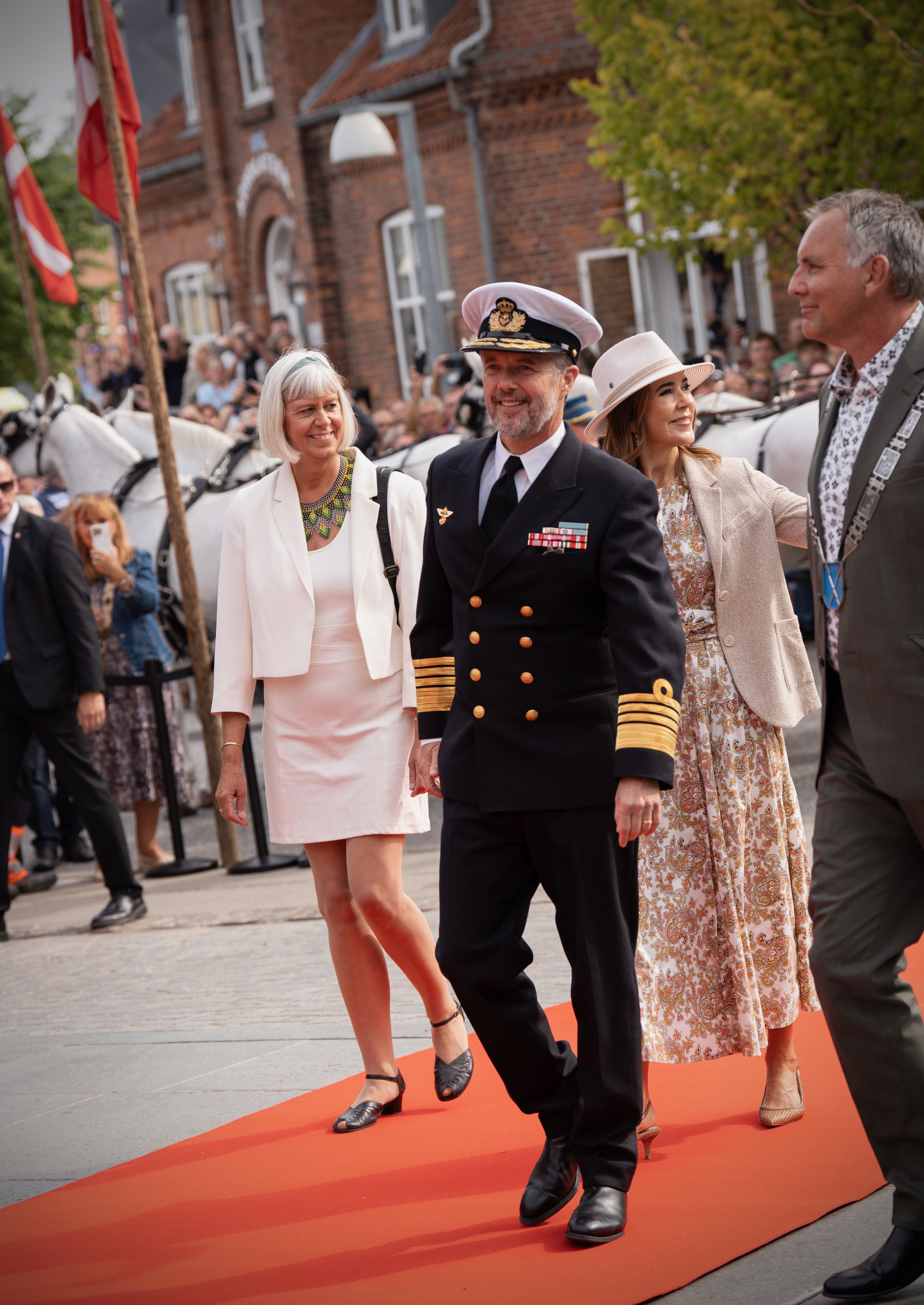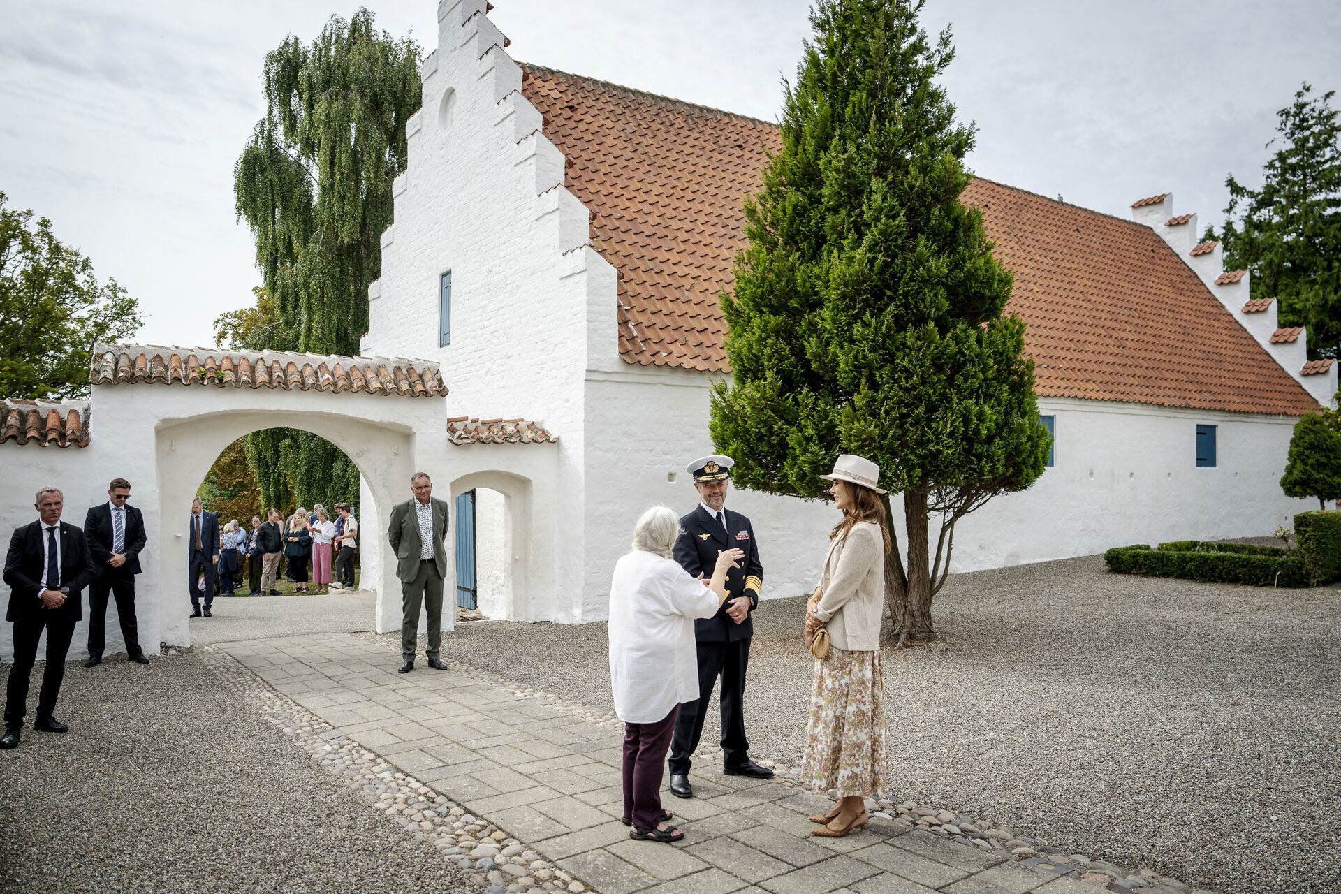 По прибытии в Церковь Транебьерг Монаршую чету приняла бывший директор музея Самсё и нынешний член приходского совета Самсё Лис Нюмарк.