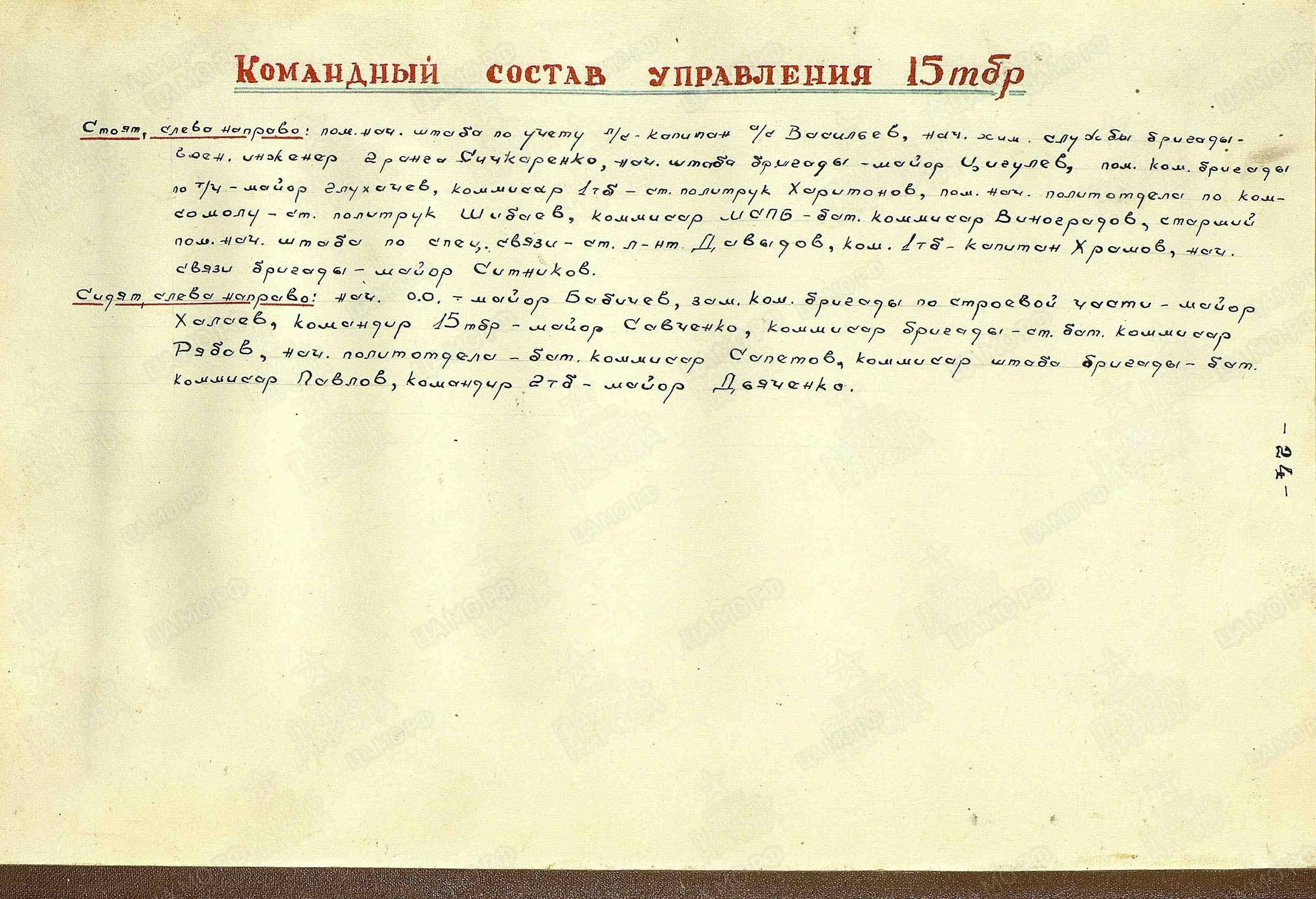 13. Помощник начальника политического отдела 15-й ОТБР по комсомолу старший политрук Шибаев, Константин Иванович. В будущем майор, в 15-й ОТБР/8-й САБР на той же должности до конца войны.