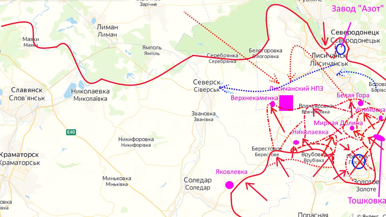 Горское и Золотое освобождены. Лисичанск близок к окружению.Накануне ВС РФ и НМ ДНР добились больших успехов в ходе освобождения Луганской Народной Республики, был освобожден целый ряд населенных пунктов: Врубовка, Тошковка, Устиновка, Лоскутовка, Подлесное, Мирная Долина, Николаевка, Рай-Александровка, Волчеяровка.