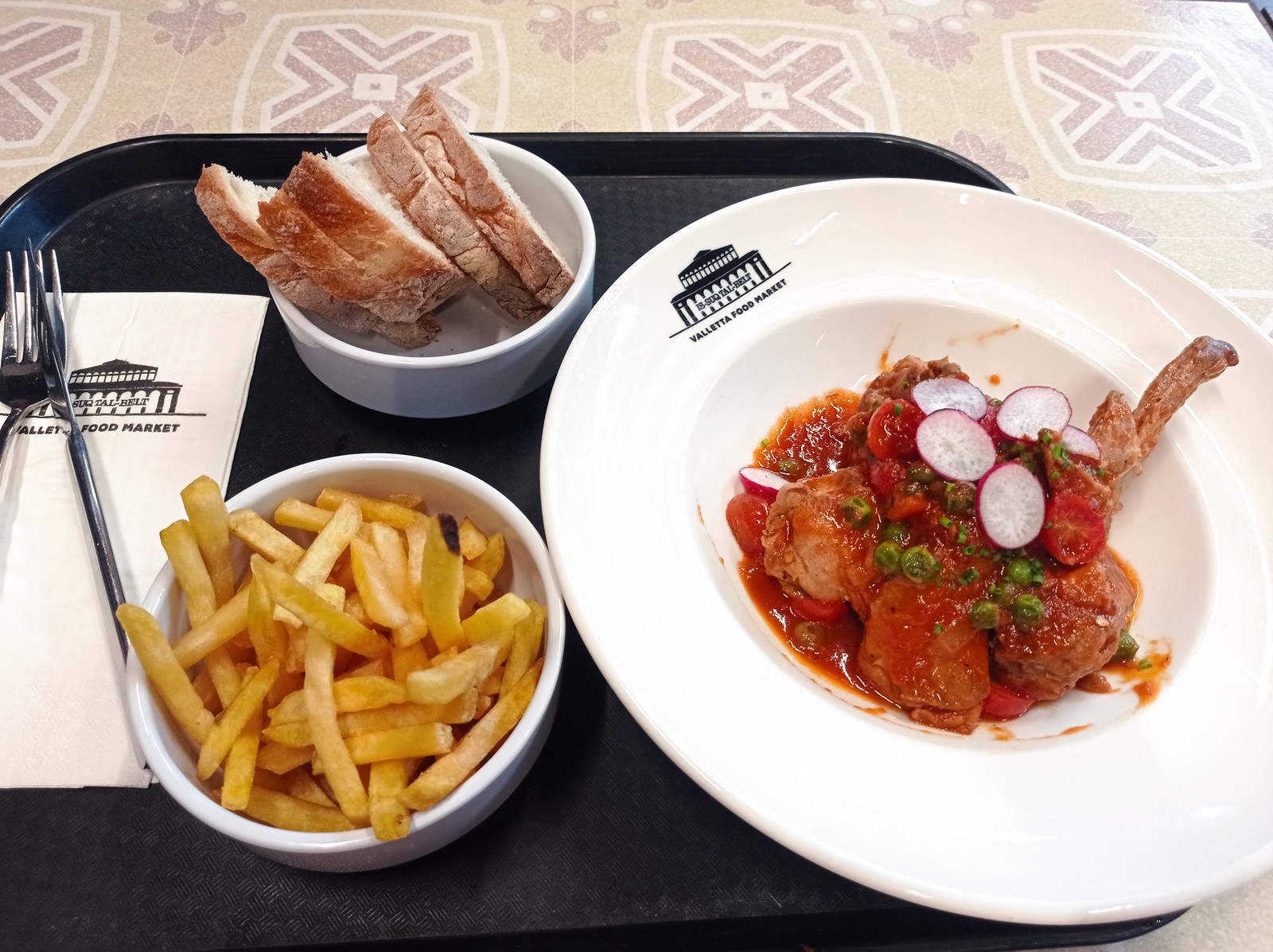 Кстати, очень интересное место, где есть как монокафе с пиццей и пастой, так и местная кухня во всем ее многообразии. Причем пиццу с мальтийскими колбасками, пасту с копченым лососем и тушеного кролика мы попробовали. Могу рекомендовать прям все из вышеперечисленного. Плю-сом фудкорта можно назвать кондиционер, которого гарантированно нет на улице.