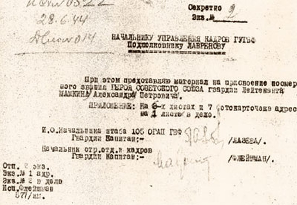 гвардии лейтенант Мамкин был посмертно представлен к званию Герой