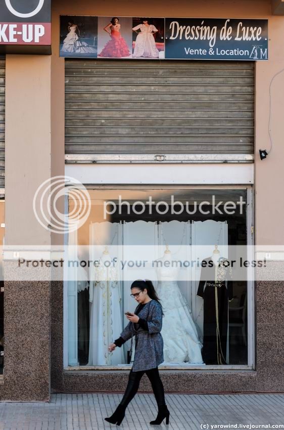 Даже люди тут по-другому одеваются. Здесь никого не смущает местная девушка без головного убора, вполне себе в европейской одежде. Посмотрите на задний фон - два платья в национальном стиле, а среднее - вполне себе в европейском..
