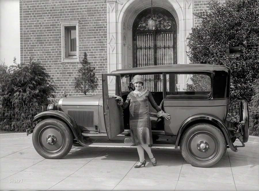 | San Francisco circa 1925. A lady and her roadster. |