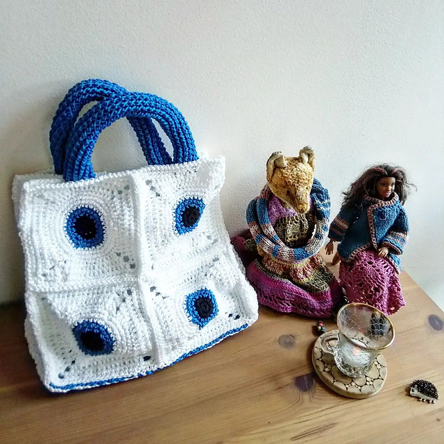 но и это ещё не конец! представляю вам свой на днях законченный проект: летная сумочка крючком из мотивов из ниток YarnArt macrame. назвала её "Protective charm" - потому что она из мотивов, напоминающих "волшебный глаз". вдохновлено туристическими амулетами, во множестве увиденными в Греции :) Yarnart macrame, полиэстер, белые 154 и синие 239; крючок 4,5мм.