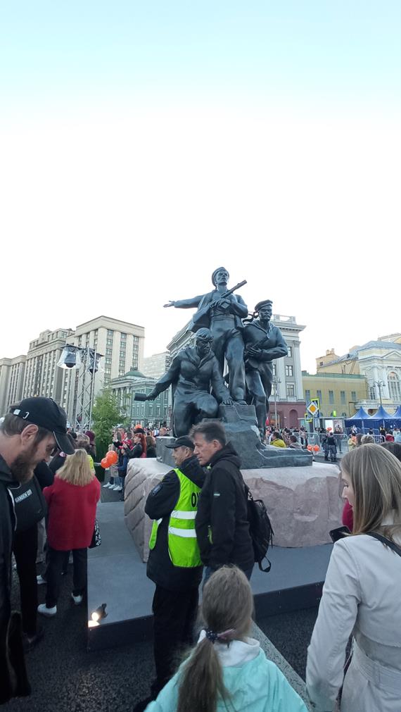 Улицу между гостиницей Москва и зданием Думы перекрыли, и на ней поставили памятники. выбор - довольно неожиданный.
