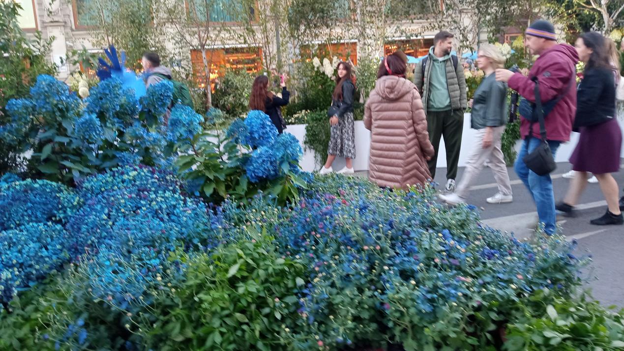 Начало Тверской отдали почему-то "Радио Релакс". Они установили деревца с красной и синей подсветкой, чирикающие динамики и между ними - несколько десятков человек с синих балахонах, размахивающих поролоновыми птичками.