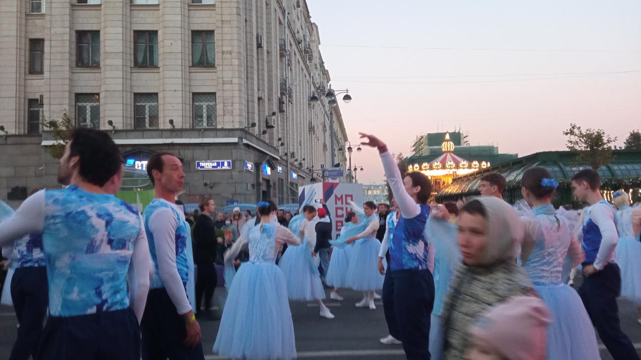 Балет. На территории для гуляния стояло несколько сцен. На одних кто-то пел, но одна была отдана под балет. Ну и плюс - массовый балет на улице, но в стиле лайт, без пуантов, в кроссовках.
