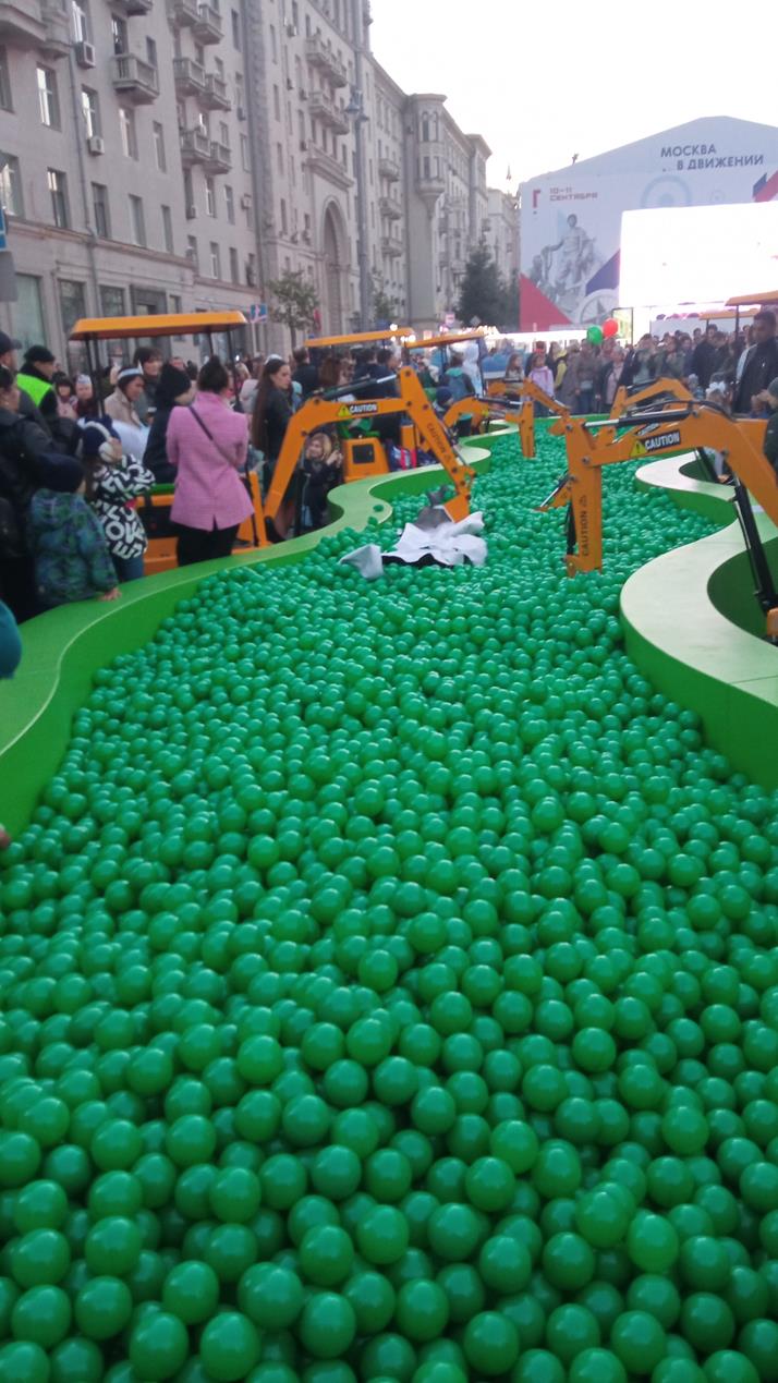Тут можно было поуправлять экскаватором, ковшом зачерпывать зеленые шарики.