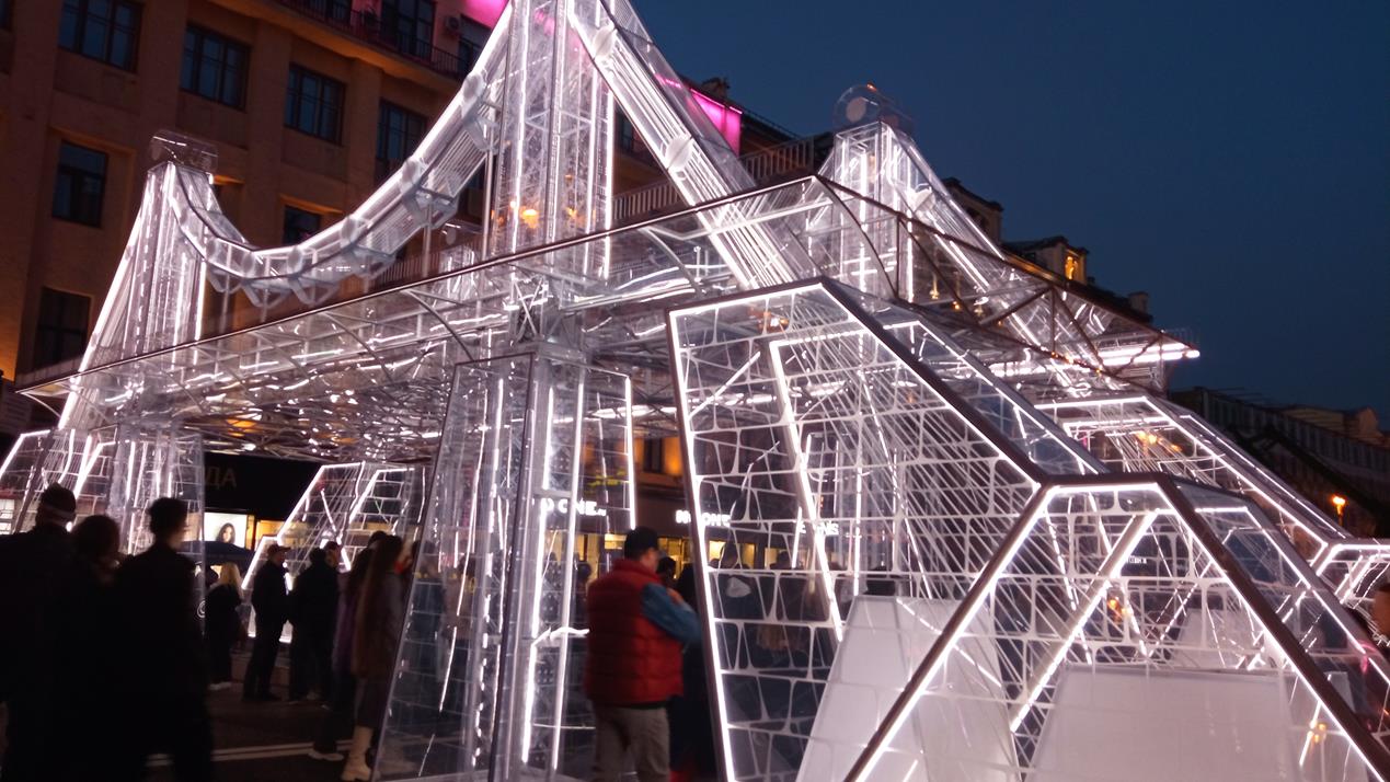 Манежную площадь украсили без экстремизма, просто цветы: арочки, гирлянды и пр. Самый забавный вариант был года 4 назад - березовая роща.