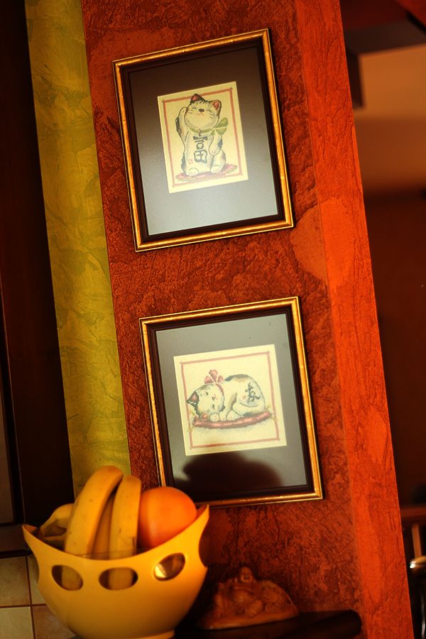 30. Вспомнила, что в прошлый раз обещала показать свои вышивки в рамочках, которые мы тогда с Полей забирали из мастерской. Вот они - мои фэншуйские котики!