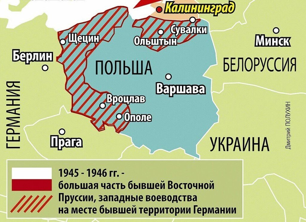 Да-да, именно такой точки зрения придерживаюсь, наблюдая за слетевшими с катушек ясновельможными, начавшие играть не просто с огнём – грядущим пожаром, способным спалить Речь Посполитую дотла. Предъявлять претензии на Восточную Пруссию целиком с немецким городом Кёнигсбергом – интересный ход, только есть нюанс. Пересмотр Ялты/Потсдама приведёт к встречным претензиям той же Германии.