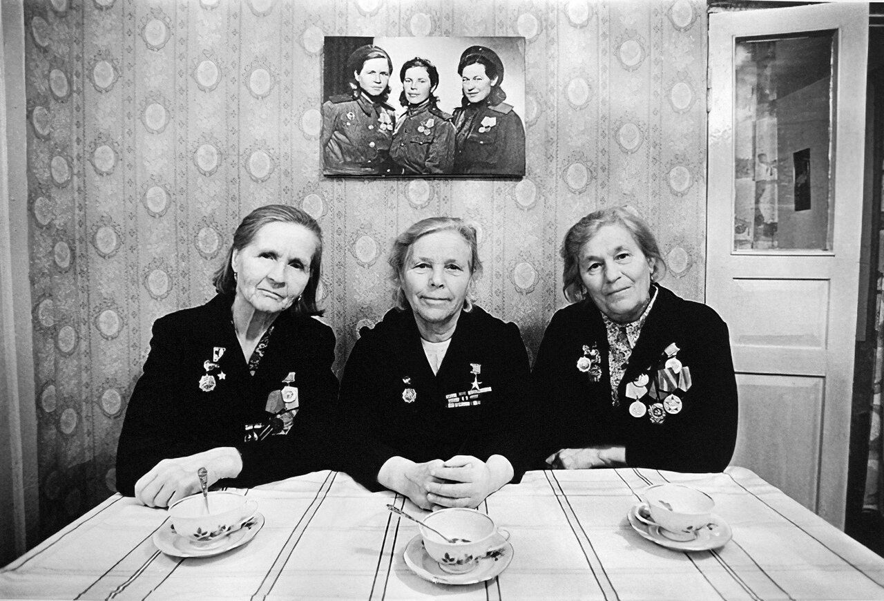 В далеком 1982-м году фотограф престижного в СССР издания «Советская Россия» Павел Кривцов работал над изданием альбома собственных фотографий. И в процессе этой подготовки наткнулся на старый снимок, сделанный другим человеком сразу после Победы 1945-го. Карточка запечатлела трех очаровательных девушек в военной форме РККА, счастливые лица которых яснее любых слов говорили, насколько они рады окончанию этой битвы и переполнены мечтами о мирном будущем.