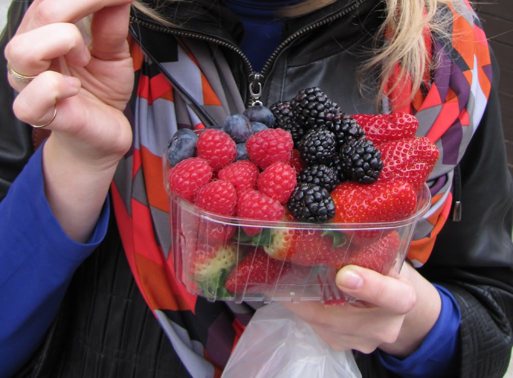 Слезши с ратуши, прогулялись между Староместской и Вацлавской площадями, пожрали вкусную малину, ежевику, чернику-переростка и невкусную, пластмассовую, но еще диковинную в это время года клубнику.