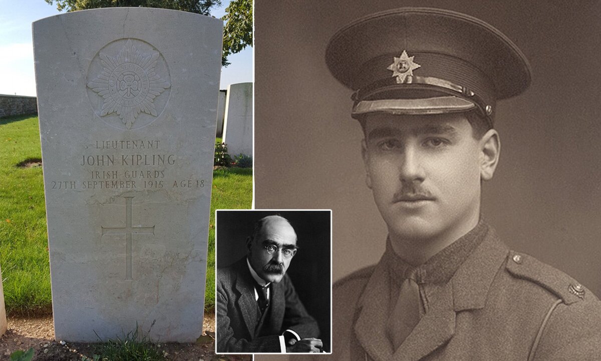 Джон Киплинг - самый младший ребёнок. Когда началась Первая мировая война ему было всего 16 лет. Киплинг-старший в 1914 году поддался всеобщей истерии и, используя весь свой талант, призывал англичан сплотиться и бить немца. Киплинг-младший целиком разделял взгляды отца на войну и решил пойти на фронт добровольцем. Как когда-то Редьярда не взяли в армию из-за плохого зрения, так и его близорукого сына не взяли на фронт. После нескольких отказов на призывных пунктах Редьярд Киплинг решил помочь сыну и использовал все свои связи, чтобы Джона отправили на войну. На свой 17-й день рождения Джон Киплинг пошёл воевать, а спустя несколько дней после 18-го дня рождения пропал без вести, сражаясь в третьей битве при Артуа. Киплинг-старший, работавший военным корреспондентом на фронте, безуспешно искал своего сына по госпиталям, и отказывался верить в то, что его мальчик Джон скончался. Лишь в 1992 году Джон Киплинг был официально объявлен мёртвым.