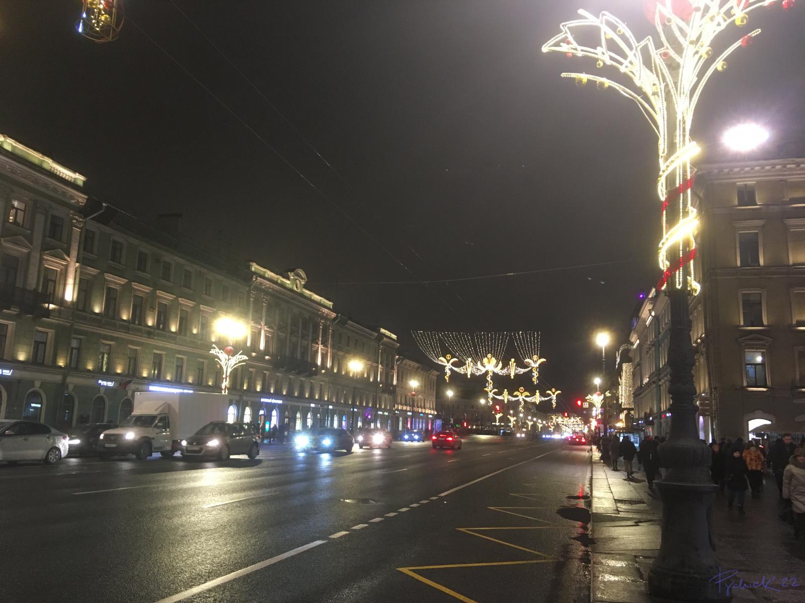 Добрались до Невского до на стремительном метрополитене, оттуда к Моврвокзалу ходят два троллейбуса, десятка и одиннадцатый, стали мы ждать. Невский украшен: