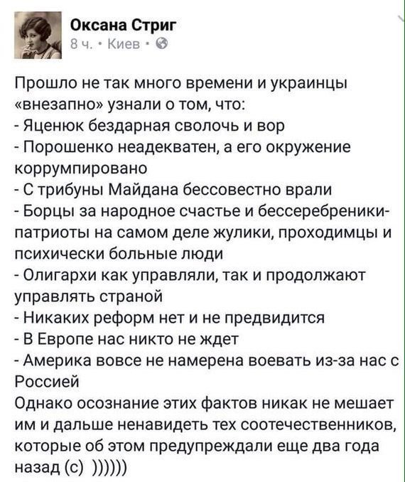 Любопытно, что из многочисленных кандидатов на президентских выборах на Украине, на которых ожидается уверенная победа кандидата, ориентирующегося на западный электорат, как раз мало представителей Западной Украины. Из более-менее известных кандидатов на Западе родился лишь один Тягнибок. ...