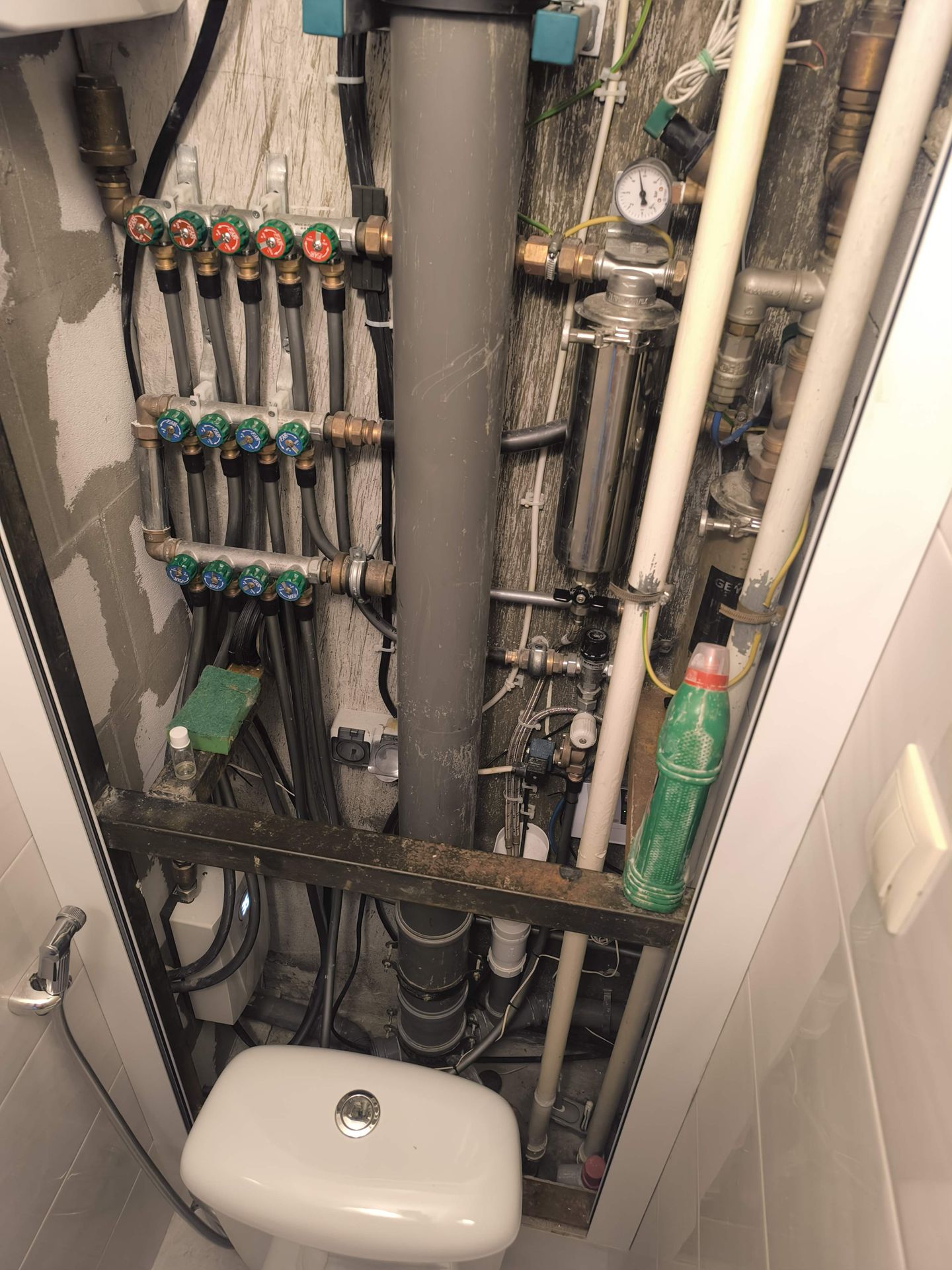 Снова мат-перемат, раскручивание гаек, попытка понять чё за фигня. Выяснил. Нерадивый сантехник завёл выход с водогрея в общую гребёнку раздачи горячей воды. Если давления на входе нет (например, город отключил горячее водоснабжение), то при открытии вентиля на гребенке с подвижного штока слетает резиновая уплотнительная шайба и затыкает собой проходное сечение отвода. Ладно. Перетряхиваю гребёнку, ставлю уплотнитель на место, пишу большую табличку "кран не закрывать!".