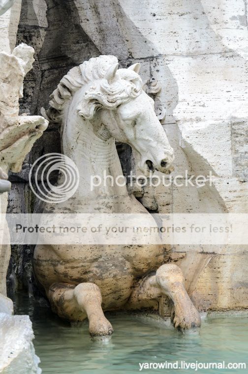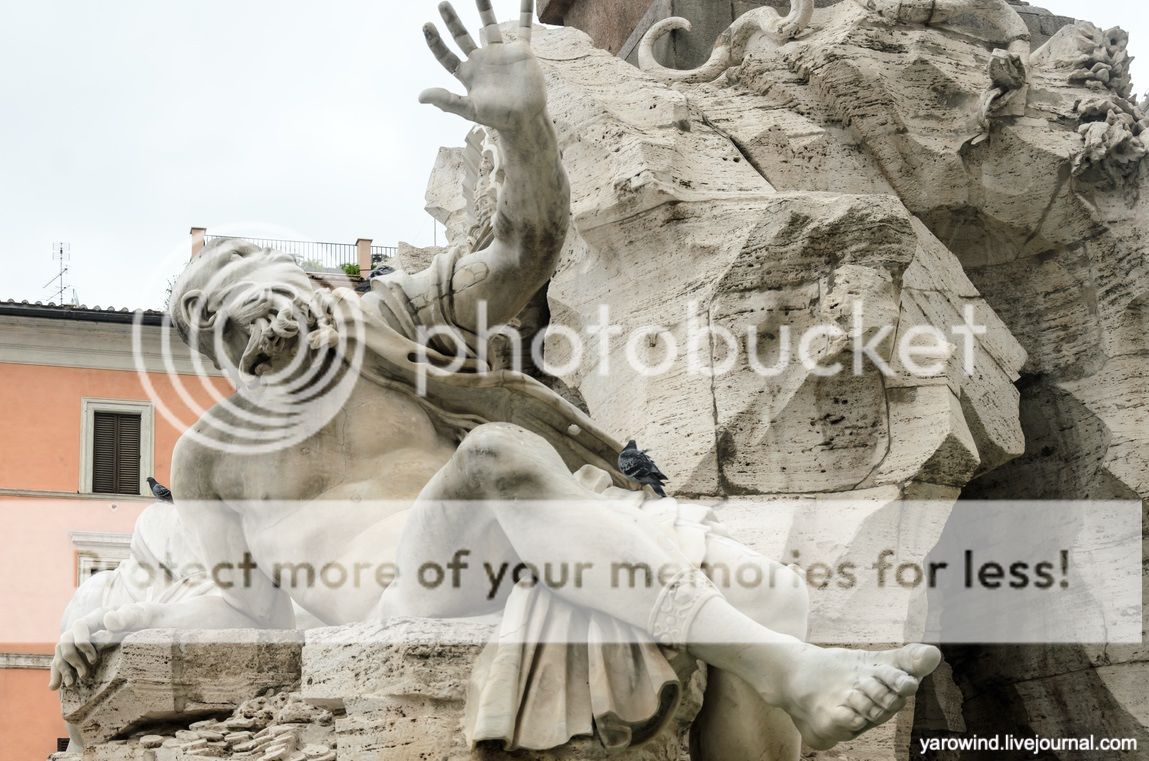 Фонтан четырех рек, 1651 - по замыслу папы Иннокентия X был призван был выразить идею торжества католической контрреформации после решений Тридентского собора. Четыре реки в четырех частях света должно были символизировать господство католической церкви во всём мире: это Нил, Ганг, Дунай и Ла-Плата.