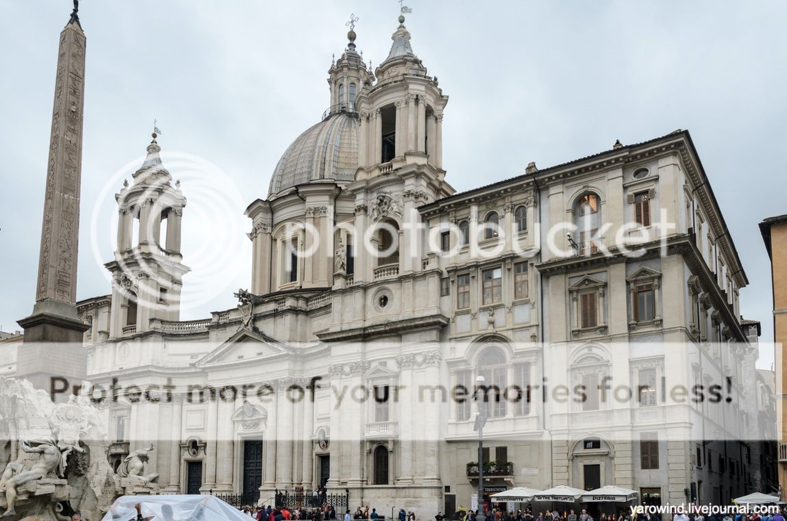 Напротив фонтана стоит базилика св. Агнессы, 1672. Посвящение не случайно, считается, что именно тут Агнессу, ей было 12 лет, и казнили при императоре Диоклетиане в 304 году, римский солдат убил её мечом.