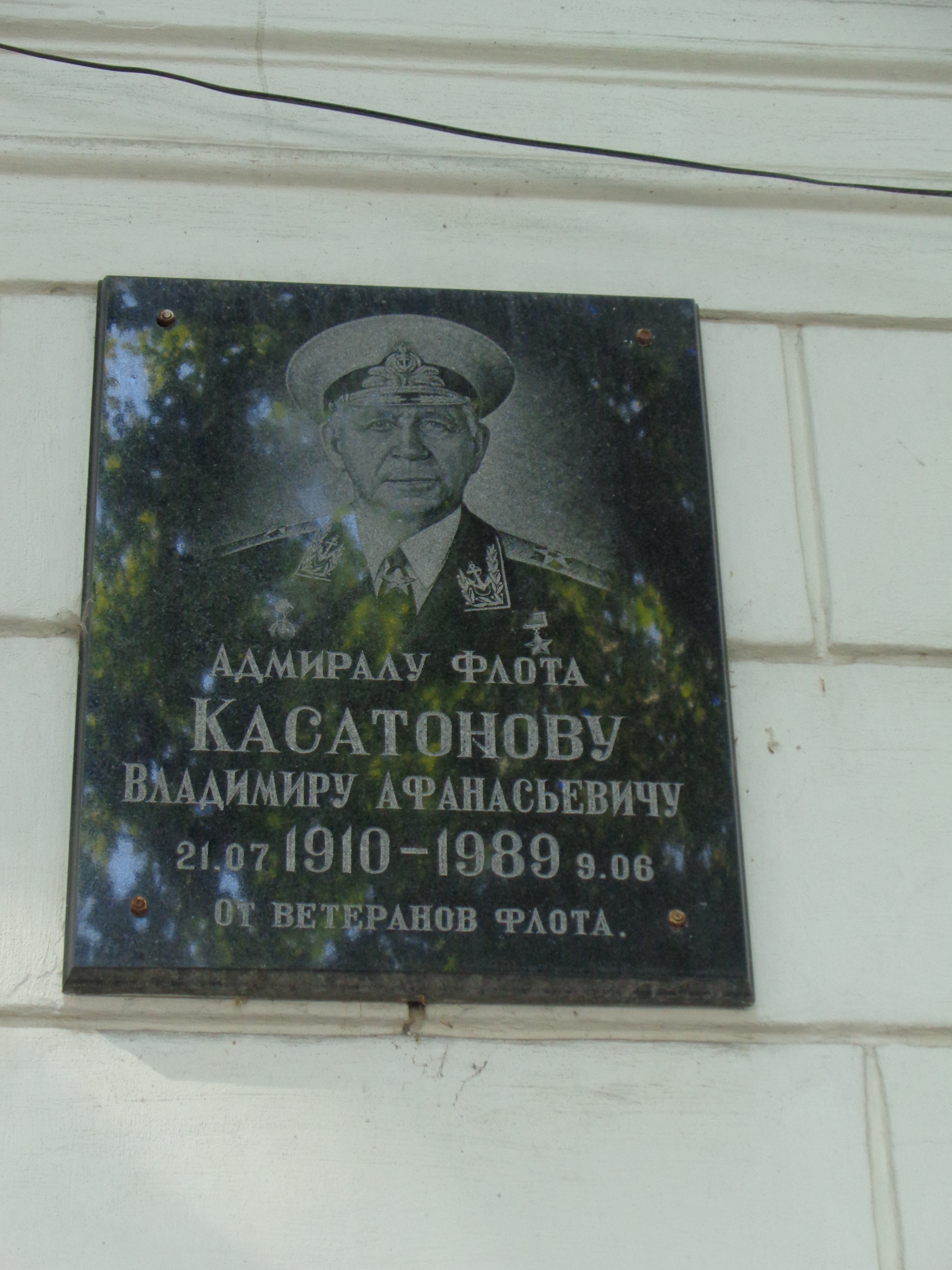 Доска посвящена Владимиру Афанасьевичу Касатонову, он командовал Черноморским флотом в 1955-62 годах.
