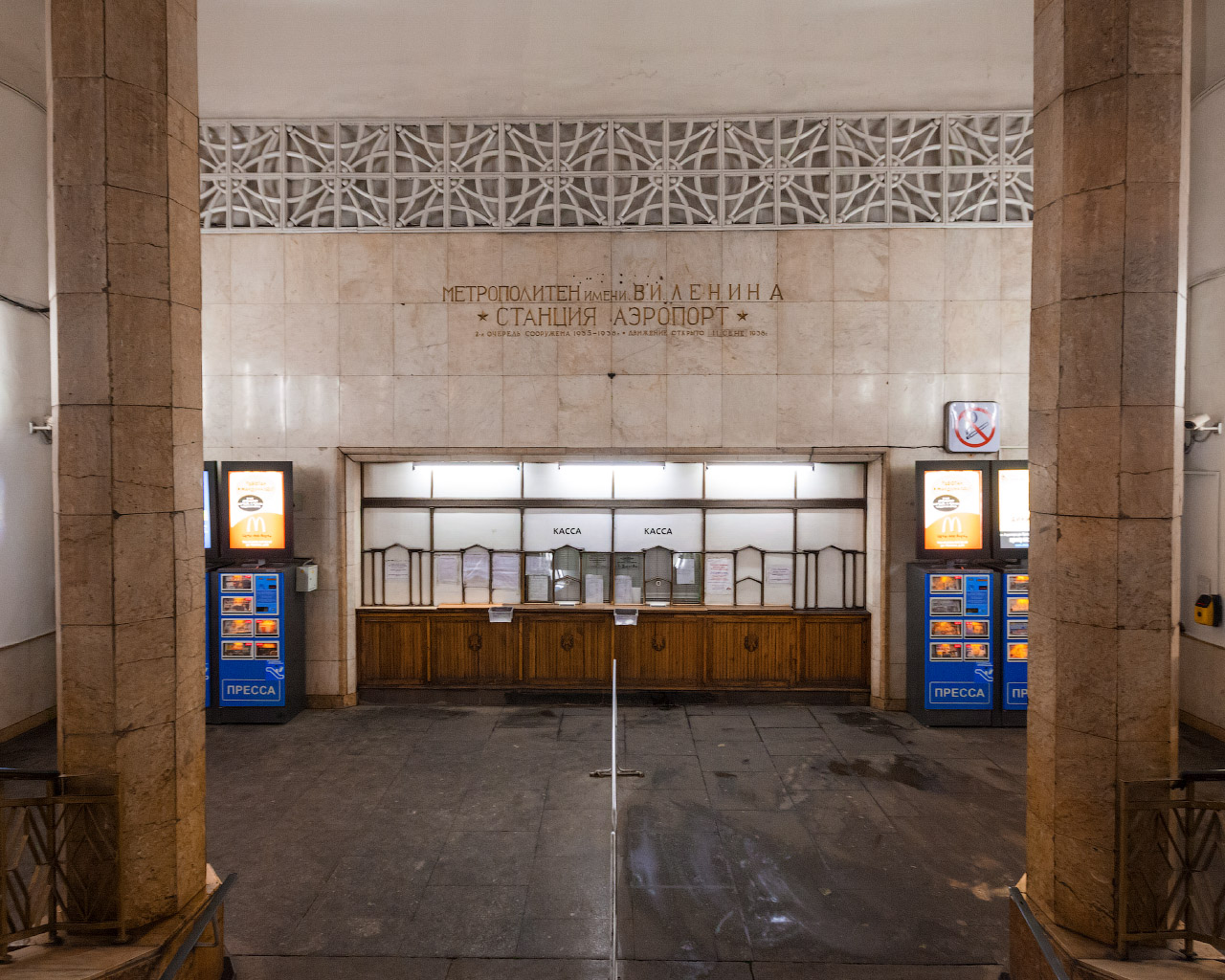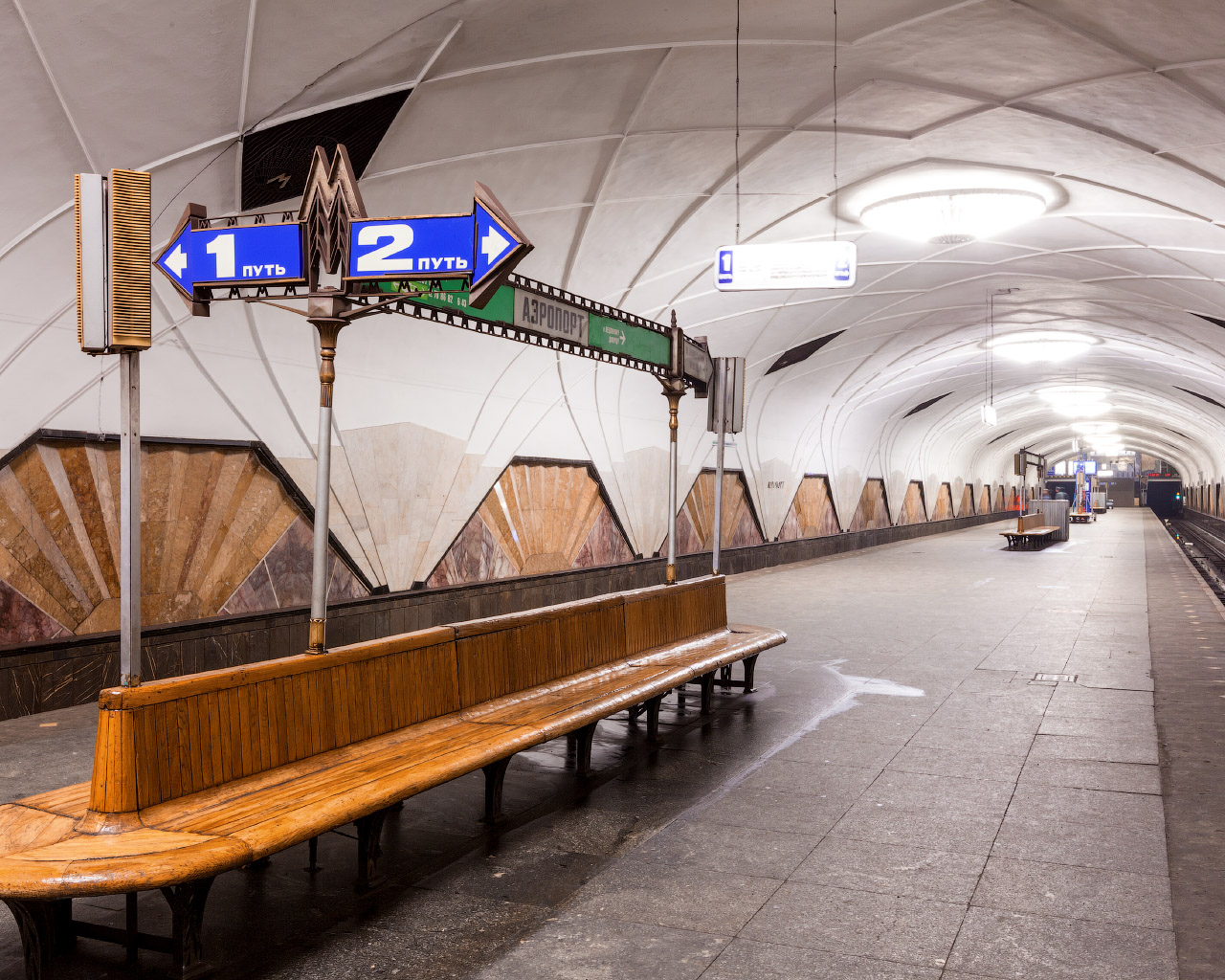 поле.«Аэропорт» — первая односводчатая станция московского метро, построенная полностью открытым способом, в отличие от Библиотеки имени Ленина, которая строилась закрытым способом.