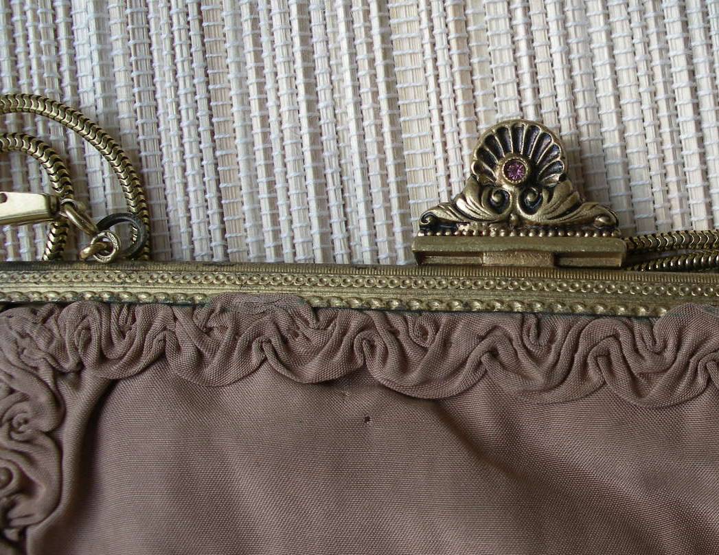 сумка в отличном состоянии, рамочка целая красивая! подкладка с присобранной ленточкой, как Оля сейчас делает, стОила аж 20 баксов :)