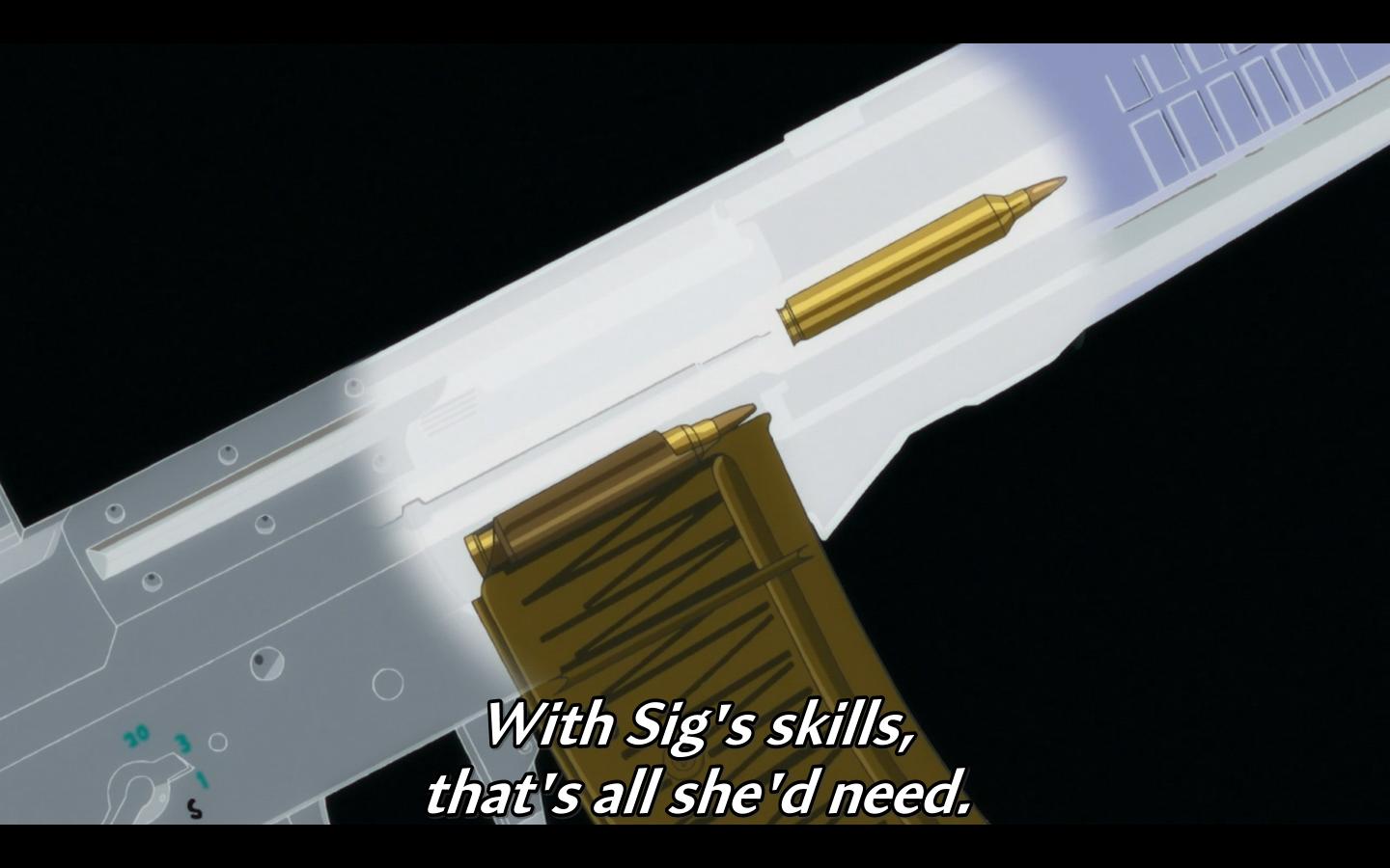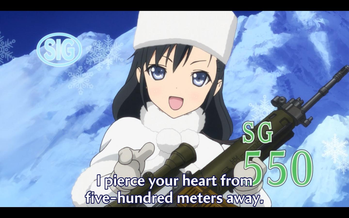 Красуется на обложке (хотя Шигу недовольно бурчит, что это, мол, исключительно из-за её дешевизны. Впрочем, SG550 может себе позволить упрёки в адрес едва ли ни кого угодно)
