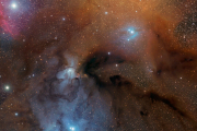 Разноцветные облака украшают этот участок неба, окружающий яркую тройную звезду Ро Змееносец [здесь фотограф почему-то ошибся: звезда, на самом деле, двойная]. Вероятно, это самая красочная область, видимая с Земли.