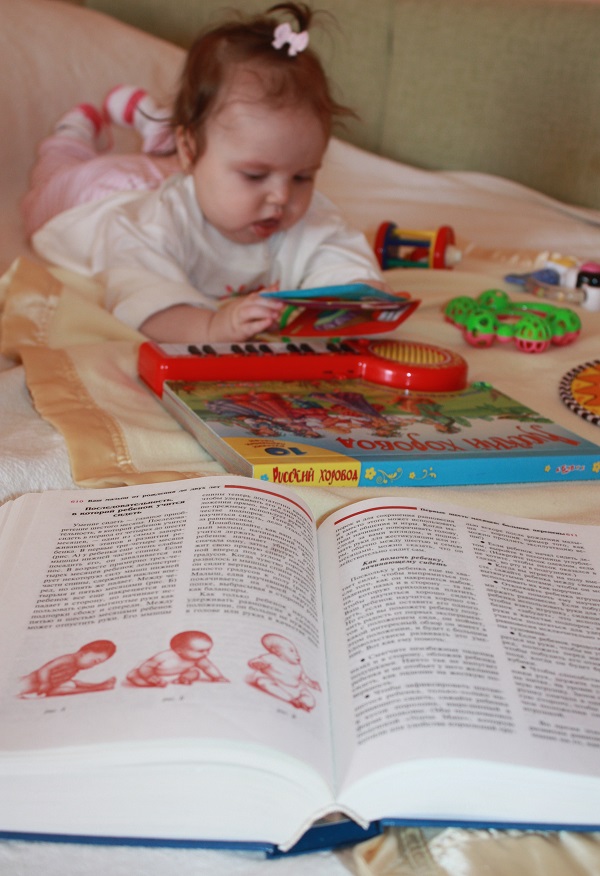 Лизушка проснулась и пьет водичку. На самом деле, у нас большие трудности с приучением ее к бутылочке, поэтому я постоянно изучаю какую-нибудь литературу на эту тему.